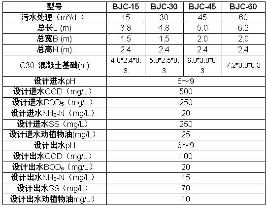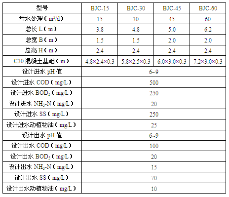 BJC系列一體化廢水處理機(jī)技術(shù)參數(shù)